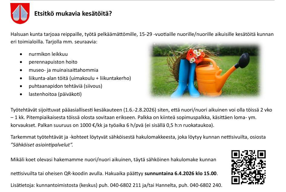 KESÄTYÖHAKU ON AUKI |