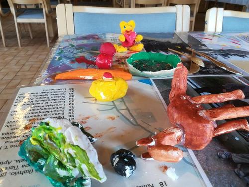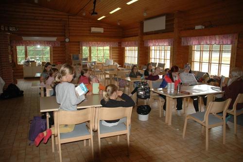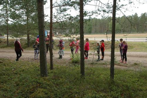 Lasten päiväleirillä leikittiin, askarreltiin, tanssittiin, urheiltiin ja kilpailtiin Iinan ja Rebekan vetämänä sekä tutustuttiin metsän kasveihin Timon opastuksella.